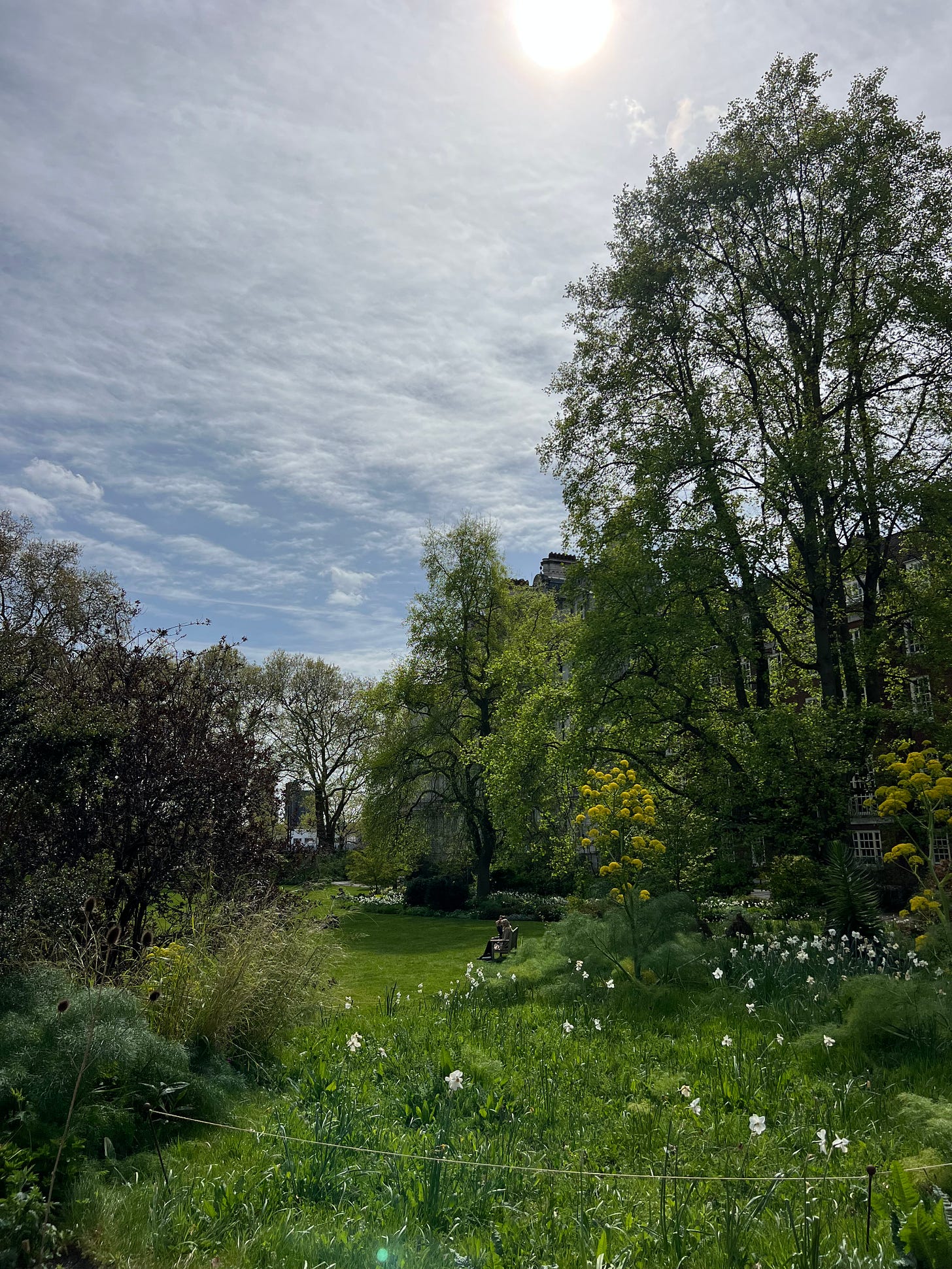 The exhibition itself was wonderful, but the afternoon was made better when I crossed over tucked-away streets and entered the Inner Temple Garden. This piece of nature was so lovely it was shocking, and standing in the midst of it, surrounded by tulips, I’d never have known I was in the middle of the world’s greatest capital city, were it not for the tops of some skyscrapers peeking out from across the Thames. I crossed another little street and sat at the Garden Café and read a book (Edith’s Diary, by Patricia Highsmith, which I didn’t end up finishing). The sun soaked away the chill of the day and a black whippet wandered around the tables, begging the humans borrowing the vicinity for a snack.